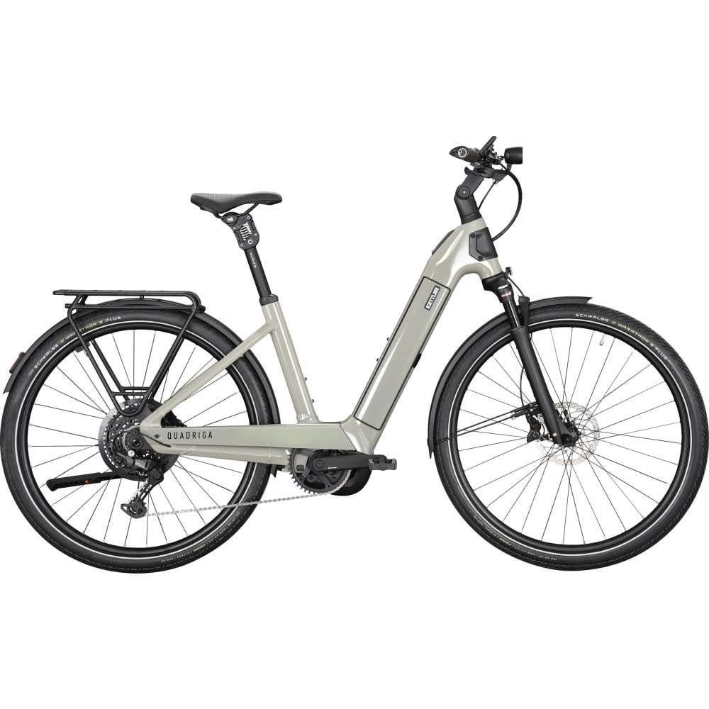 De nieuwe QUADRIGA CX10 biedt een indrukwekkende combinatie van innovatieve technologie en hoogwaardige onderdelen. De nieuwe Performance Line CX-motor met geoptimaliseerde sensoren en verder gereduceerde geluidsniveaus zorgt voor een bijzonder harmonieuze rijervaring, terwijl de verbeterde framegeometrie en de aluminium kettingkast staan voor comfort en duurzaamheid. Met de optionele voormandbevestiging en het verlichte logo zet de QUADRIGA CX10 nieuwe maatstaven op het gebied van design en functionaliteit. De lage en brede instap vergemakkelijkt het op- en afstappen tijdens de dagelijkse stop-and-go in de stad. Het bijzonder grote scherm van het Bosch Kiox 500 display toont duidelijk belangrijke informatie zoals batterijstatus, actieradius of snelheid. De grotere knoppen verbeteren de bediening aanzienlijk. De Suntour luchtgeveerde voorvork en de parallellogramvering van by.schulz zorgen voor een hoog rijcomfort, vooral op oneffen wegen of grindpaden. Er kan een kickstand met twee poten worden gemonteerd voor meer stabiliteit bij het parkeren van de e-bike. Dit maakt het in- en uitladen van de fiets gemakkelijker en veiliger. De in het frame geïntegreerde houder voor een achteraf te monteren GPS-module verbetert de diefstalbeveiliging via tracking. De QUADRIGA CX10 is de veilige en comfortabele keuze voor dagelijks gebruik.